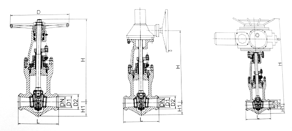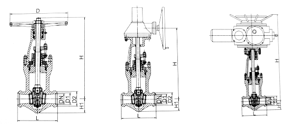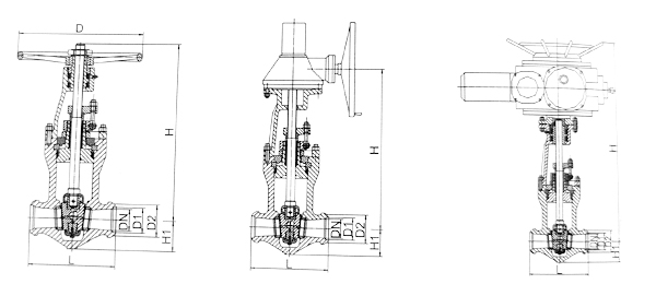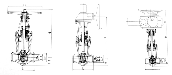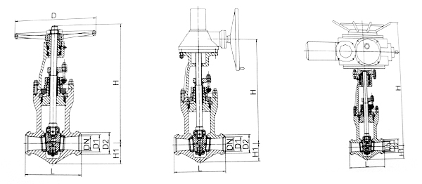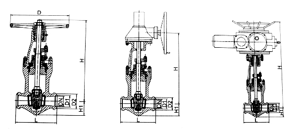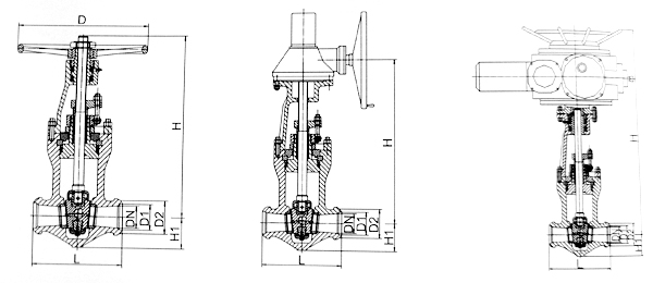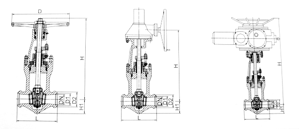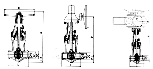 - 采用无中法兰压力自紧式密封结构,双闸板,两端支管为焊接连接。